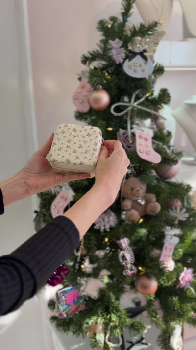Keep your jewelry beautifully organized with our Coquette Jewelry Travel Case, designed with a soft cream exterior covered in delicate blue ribbon motifs. This charming, coquette-inspired case is perfect for storing your rings, earrings, bracelets, and dainty necklaces whether you're at home or on the go.